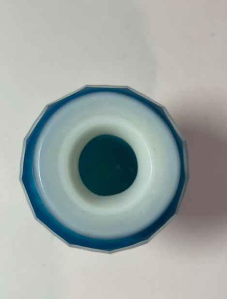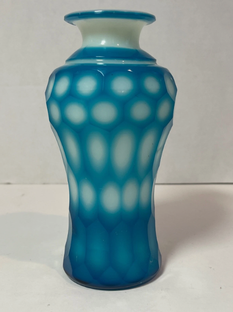 Antique Chinese Peking Glass Vase, White Cased in Blue with Cut Hexagon Pattern, Circa 1900